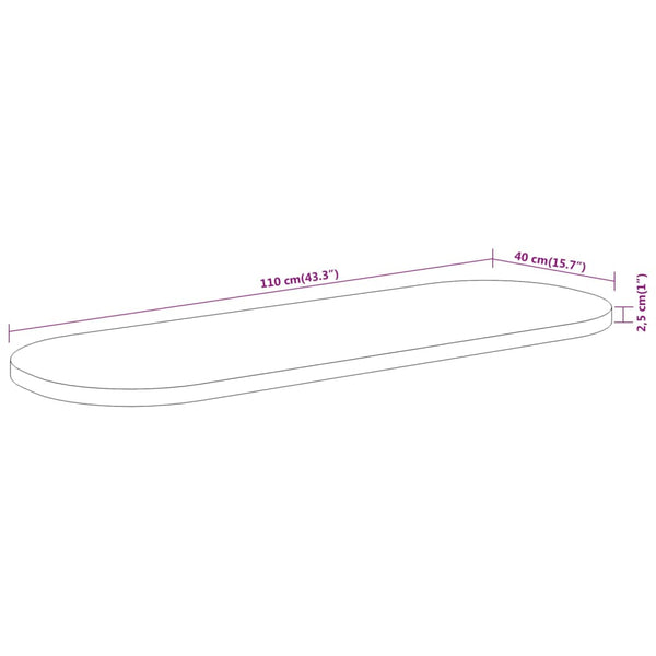 Pöytälevy 110x40x2,5cm ovaali akasiapuu