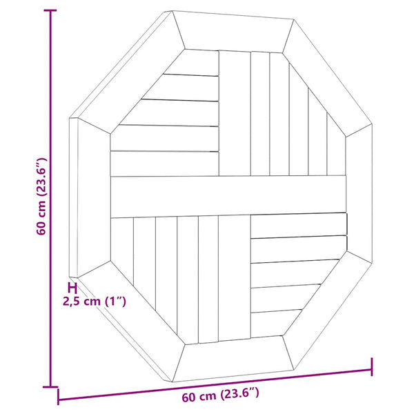 Pöytälevy 60x60x2,5cm kahdeksankulmio tiikki