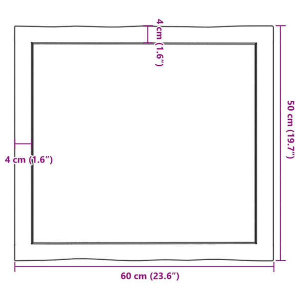 Ruskea pöytälevy 60x50x(2-4 cm käsitelty täystammi elävä reuna