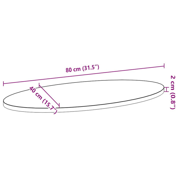 Vaaleanruskea pöytälevy 80x40x2cm massiivipuu tammi soikea