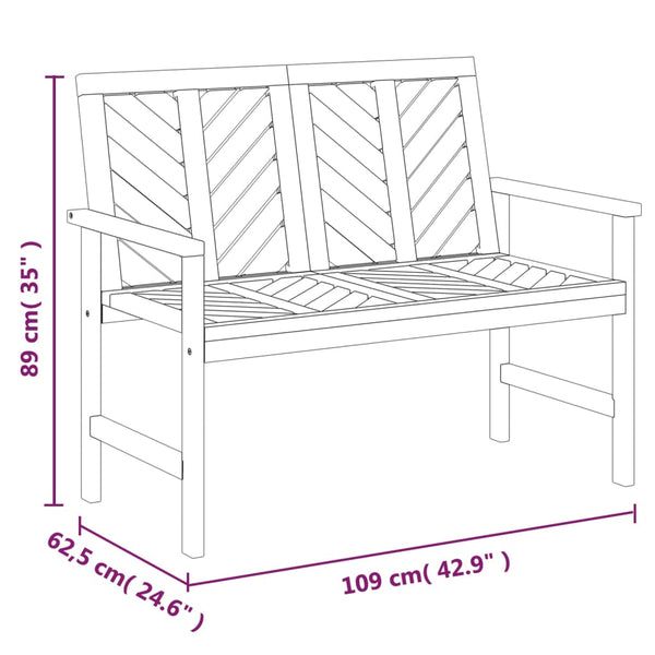• Mukavat istuimet: Puutarhapenkissä on käsinojat ja chevron-kuvioitu selkänoja, jotka tarjoavat miellyttävän istumakokemuksen.