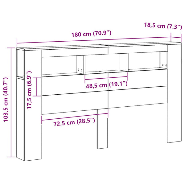 Artesaani tammi sängynpääty led-valoilla 180x18,5x103,5cm puu