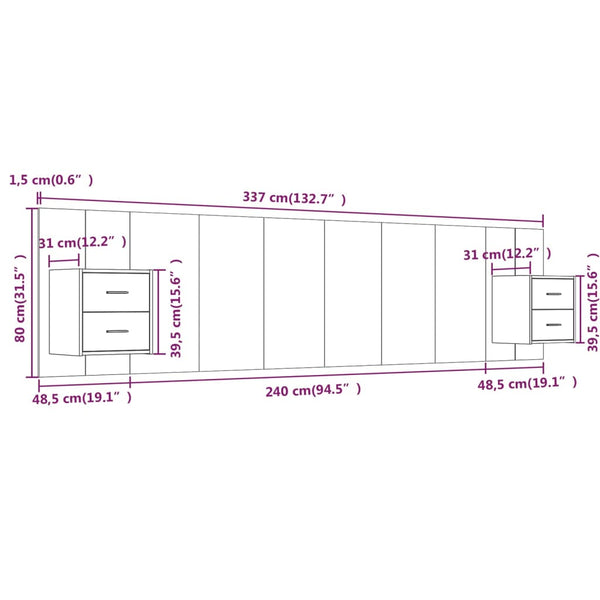 • Seinäkiinnitettävä suunnittelu: Nämä kelluvat yöpöydät ja päätylevy voidaan kiinnittää seinällesi. Tällä tavoin voit maksimoida lattiatilasi ja pitää alueen siistinä.