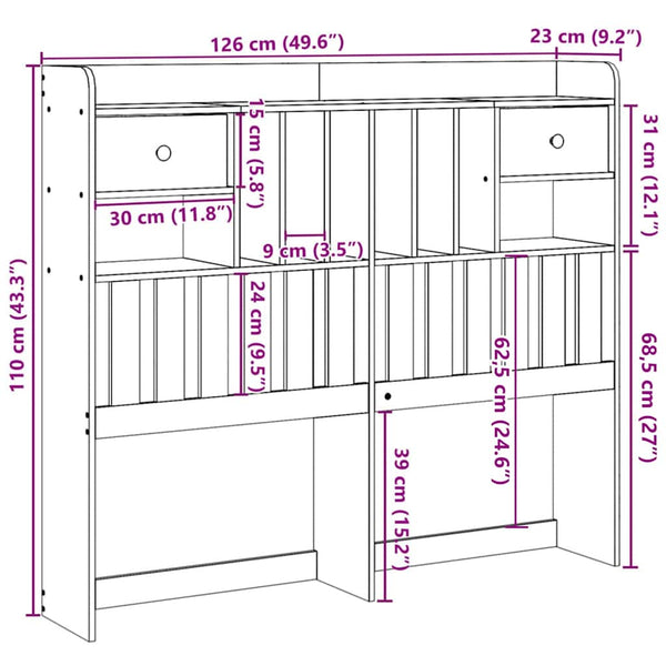 Vahanruskea sängynpääty säilytystilalla 120cm mänty
