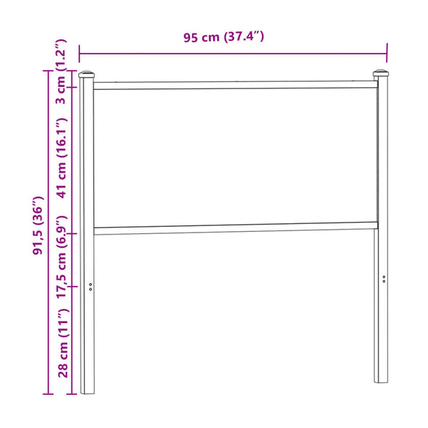 Ruskea sängynpääty 90cm tammi, puinen ja teräs