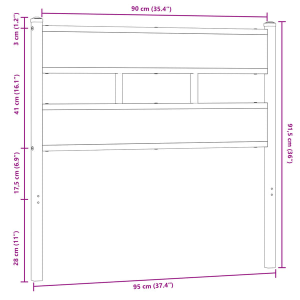 Ruskea sängynpääty 90cm tammi, teräs ja puu