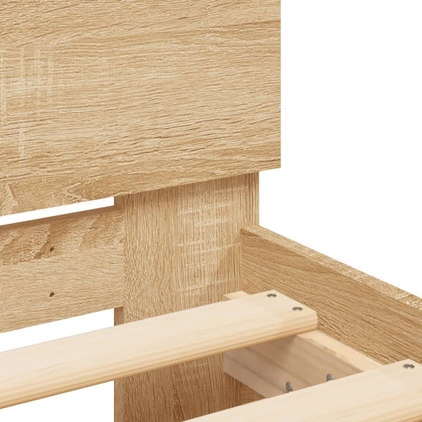 Sonoma-tammi sängynrunko päädyllä ja led-valoilla 100x200cm
