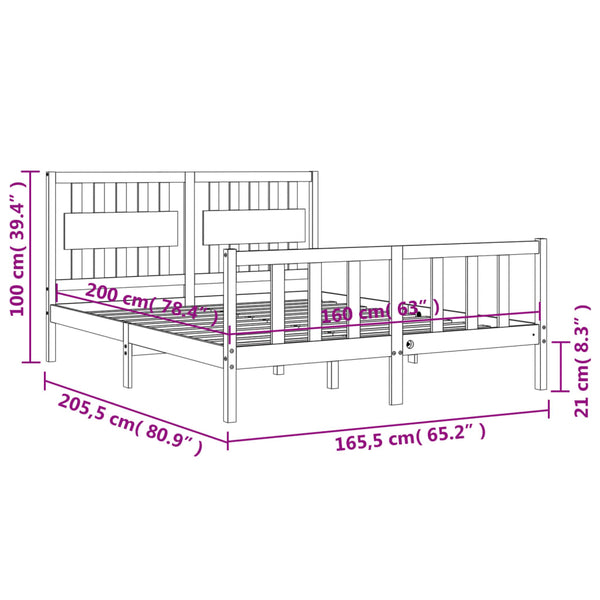 Sängynrunko päädyllä 160x200cm mänty