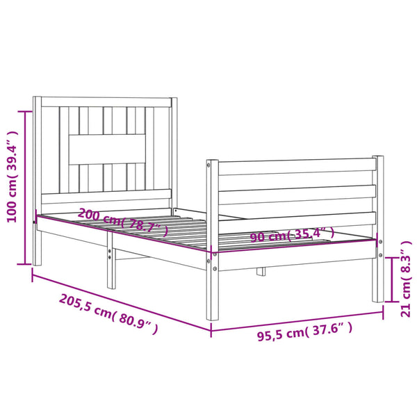Sängynrunko päädyllä Medora 90x200cm (puu)