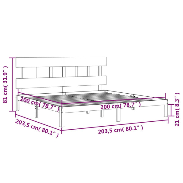 Hunajanruskea sängynrunko päädyllä Kizner 200x200cm (puu)
