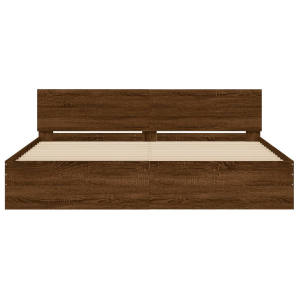 Ruskea tammi sängynrunko päädyllä 200x200cm