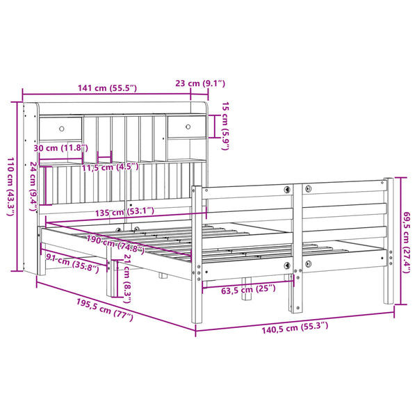 Vahanrusk sänky kirjahyllyllä ei patjaa 135x190cm mänty