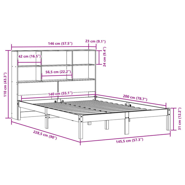 Vahanrusk sänky kirjahyllyllä ei patjaa 140x200cm mänty