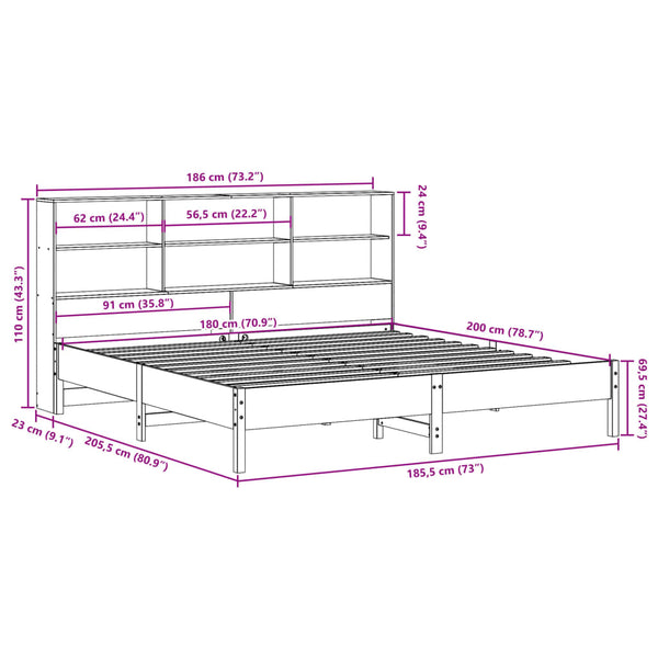 Vahanrusk sänky kirjahyllyllä ei patjaa 180x200cm mänty