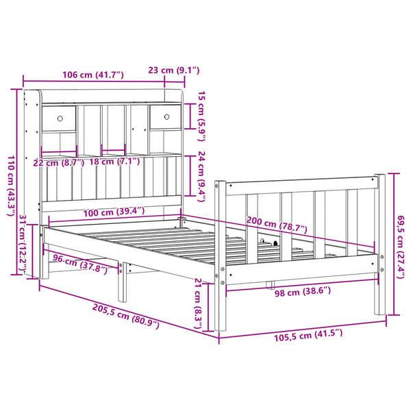 Sänky kirjahyllyllä ilman patjaa 100x200cm mänty