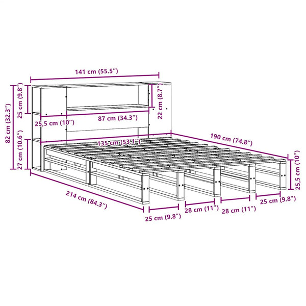Sänky kirjahyllyllä ilman patjaa 135x190cm puu