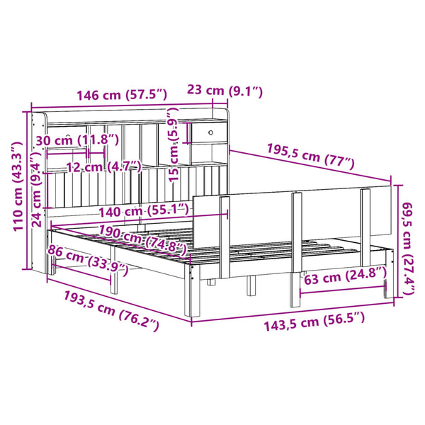 Sänky kirjahyllyllä ilman patjaa 140x190cm mänty