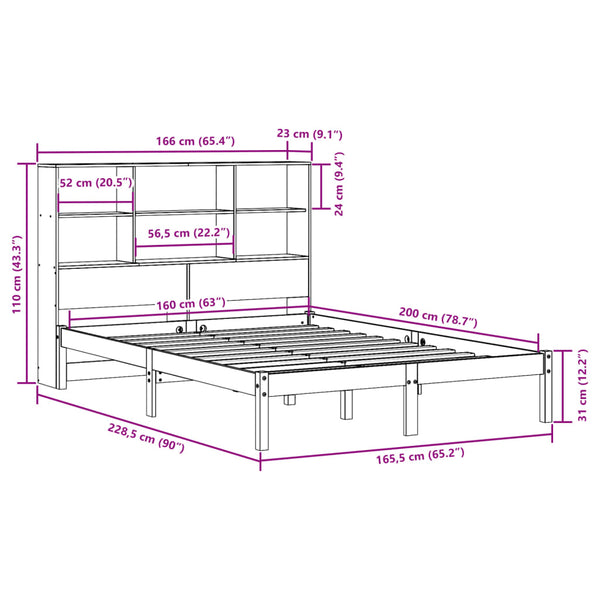Sänky kirjahyllyllä ilman patjaa 160x200cm mänty