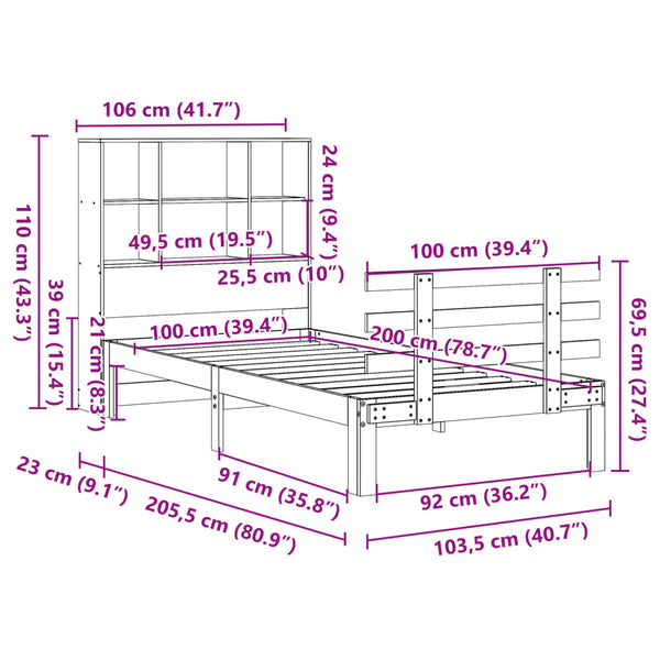 Vahanruskea sänky/kirjahylly ei patjaa 100x200cm mänty