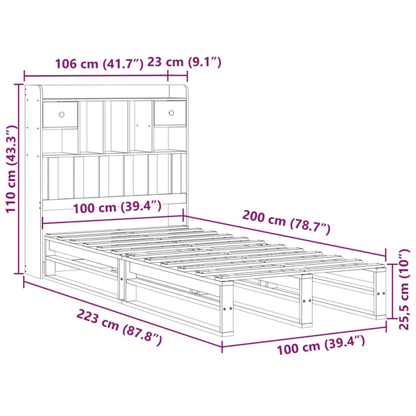 Vahanruskea sänky/kirjahylly ei patjaa 100x200cm mänty