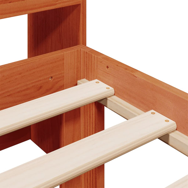 Vahanruskea sänky/kirjahylly ilman patjaa 75x190cm mänty
