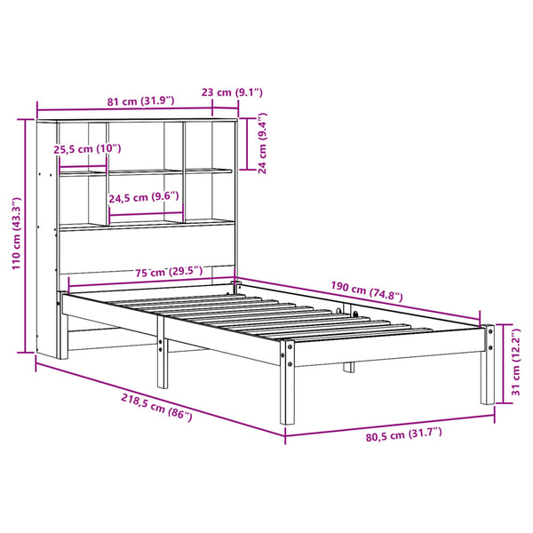 Vahanruskea sänky/kirjahylly ilman patjaa 75x190cm mänty