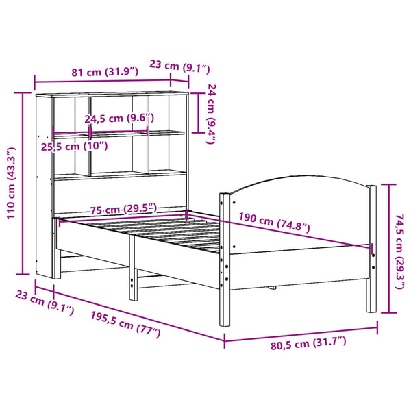 Vahanruskea sänky/kirjahylly ilman patjaa 75x190cm mänty