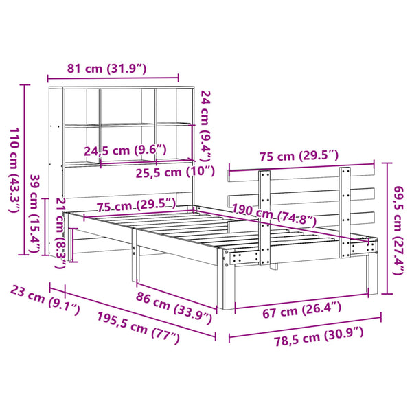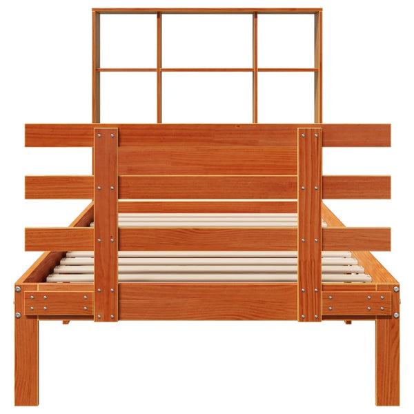 Vahanruskea sänky/kirjahylly ilman patjaa 75x190cm mänty