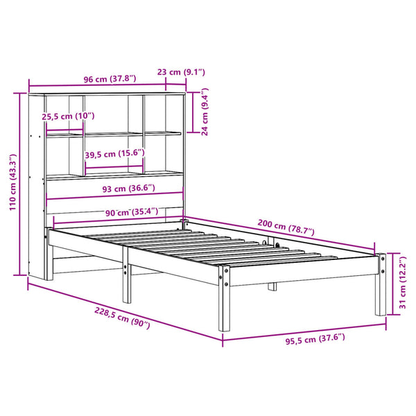 Vahanruskea sänky/kirjahylly ilman patjaa 90x200cm mänty