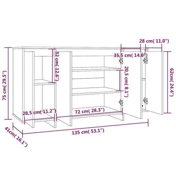 Tässä sivukaapissa on erittäin tukeva ja kestävä rakenne. Neljällä ovella varustettu kaappi tarjoaa reilusti säilytystilaa kirjoille, multimedialaitteille ja muille esineille. Tukeva pöytälevy on ihanteellinen koriste-esineille, valokuvakehyksille ja ruukkukasveille. Lisäksi säilytyskaapin puhdistus käy helposti kostealla liinalla.