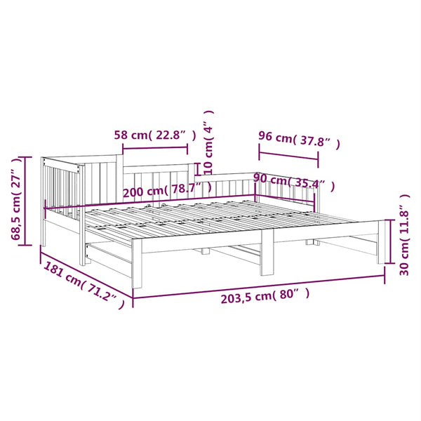 Sohvasänky ulosvedettävä 90x200cm 2x, mänty