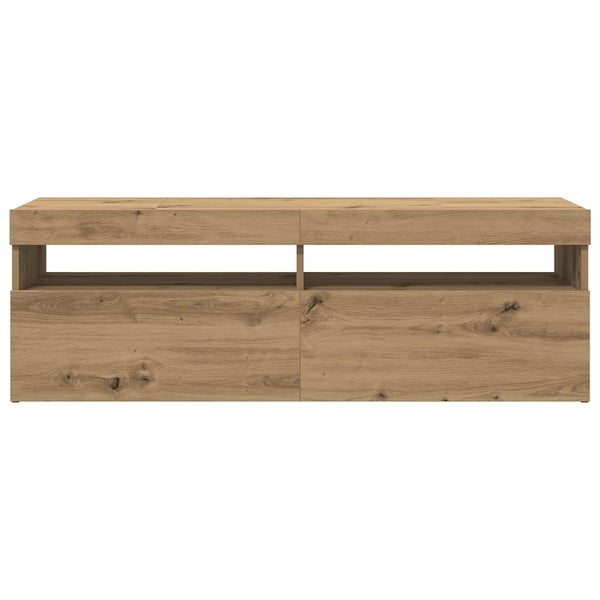 Käsityöläinen tammi tv-kaappi led-valoilla 120x35x40cm