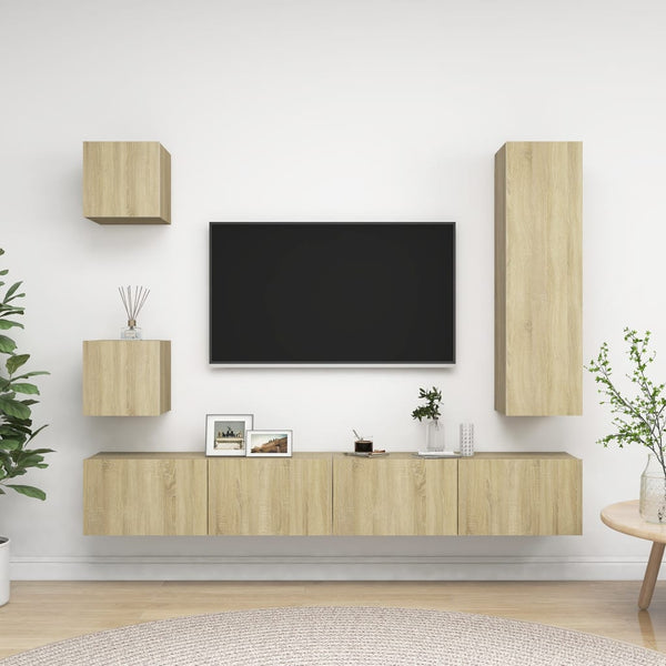 Tv-kaappisarja 5-osainen, sonoma-tammi, puinen