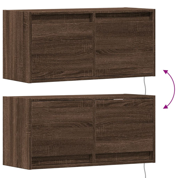 Ruskea tammi tv-seinäkaappi 80x31x35cm led-valoilla