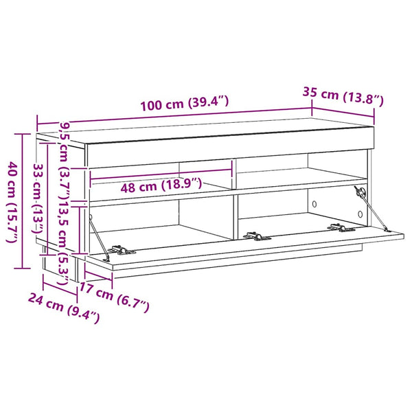 Ruskea tammi tv-taso led-valoilla 100x35x40cm