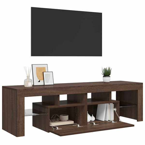 Ruskea tammi tv-taso led-valoilla 140x36,5x40cm