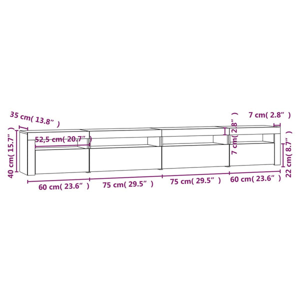 Sonoma tammi tv-taso led-valoilla 270x35x40cm