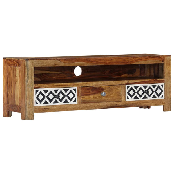 Vintagetyylinen TV-taso on valmistettu täydestä seesampuusta. Se on ajaton lisä kodin sisustukseen. Kauniista puunsyistään tunnettu seesampuu on trooppinen kovapuu, jota kutsutaan myös nimillä ruusupuu ja palisanteri. Jokainen valmistusvaihe on tehty erityisen huolella, olipa se sitten kiillotus, maalaus tai lakkaus. Siinä on 3 vetolaatikkoa pikkutavaroiden säilytykseen ja avoin lokero multimedialaitteiden, pelikonsoleiden ja aikakauslehtien säilyttämiseen.