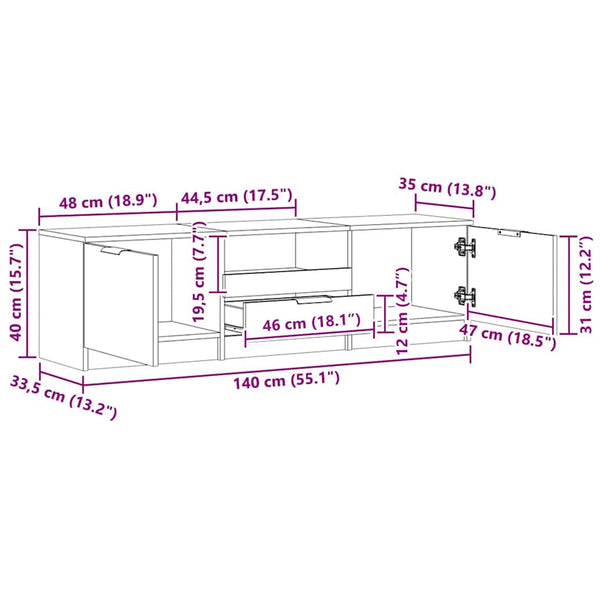 Artesaani tammi tv-taso 140x35x40cm puinen