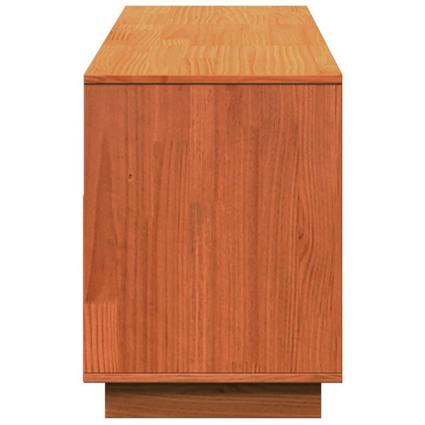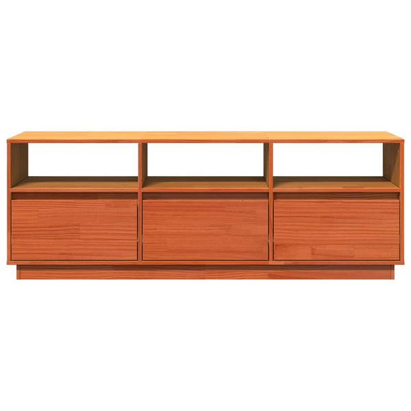 Tämä puinen TV-taso, jossa on runsaasti säilytystilaa, on käytännöllinen katseenvangitsija olo- tai makuuhuoneessa.