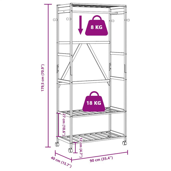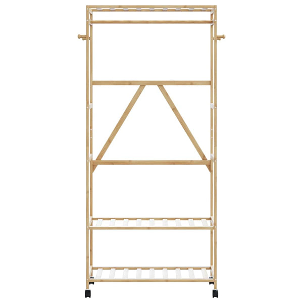 Vaateteline hyllyillä ja pyörillä 90x40x179,5cm bambu