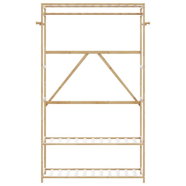 Bambuinen vaateteline tarjoaa luonnollisen ratkaisun tilan järjestämiseen yhdistämällä käytännöllisen muotoilun tukevaan toimivuuteen.