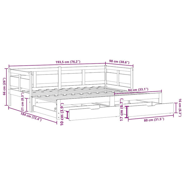 Vuodesohva rullilla ja laatikoilla 90x190cm mänty