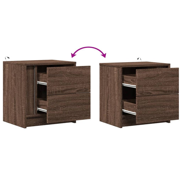 Ruskea yöpöytä led-valoilla 2 kpl, tammi puinen