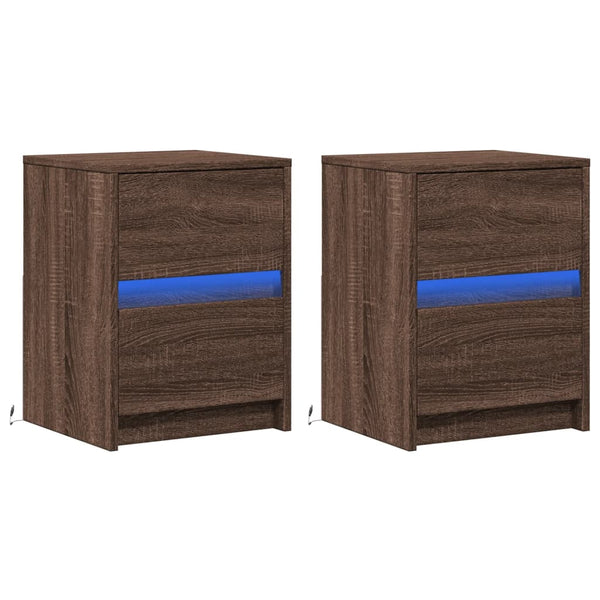 Ruskea yöpöytä led-valoilla 2 kpl, tammi puinen