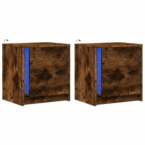 Yöpöytä led-valoilla 2 kpl savutammi puinen
