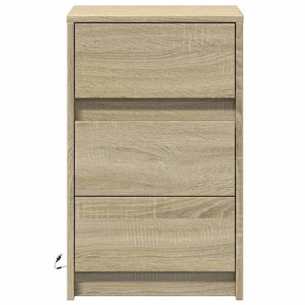 Yöpöytä led-valoilla sonoma-tammi puinen