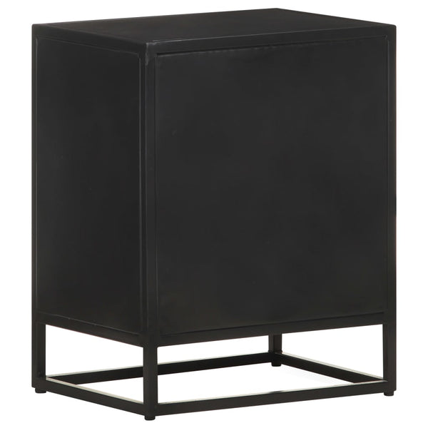 Sivukaappi on valmistettu karkeasta mangopuusta, trooppisesta lehtipuusta, jolla on kykyä kantaa painoa. Se kestää myös ajan patinaa, tehden siitä vakaan ja kestävän. Jauhemaalattu rautarunko tuo sille lisää vakautta. Yöpöydän tukevalle pöytälevylle voi asettaa yövalon, herätyskellon ja muita tarvitsemiasi tavaroita. Yöpöydässä on suuri lokero käsin veistettyjä kuvioita sisältävän oven takana, joka tarjoaa reilusti säilytystilaa pikkutavaroiden järjestyksessä ja ulottuvilla pitämiseen.