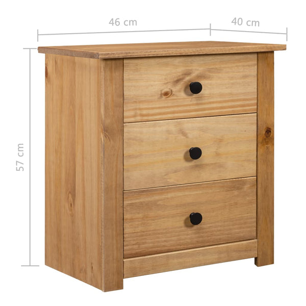Täydestä männystä valmistettu yöpöytä on todella vakaa ja kestävä. Vankalle pöytätasolle voi asettaa koriste-esineitä kuten maljakoita tai ruukkukasveja. 3 vetolaatikolla varustetussa yöpöydässä on runsaasti tilaa tavaroiden järjestelmälliseen säilyttämiseen. Tämä yöpöytä on myös helppo puhdistaa kuivalla liinalla.