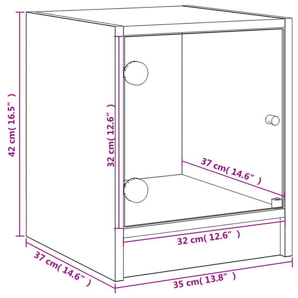Ruskea yöpöytä 35x37x42cm lasiovella tammi
